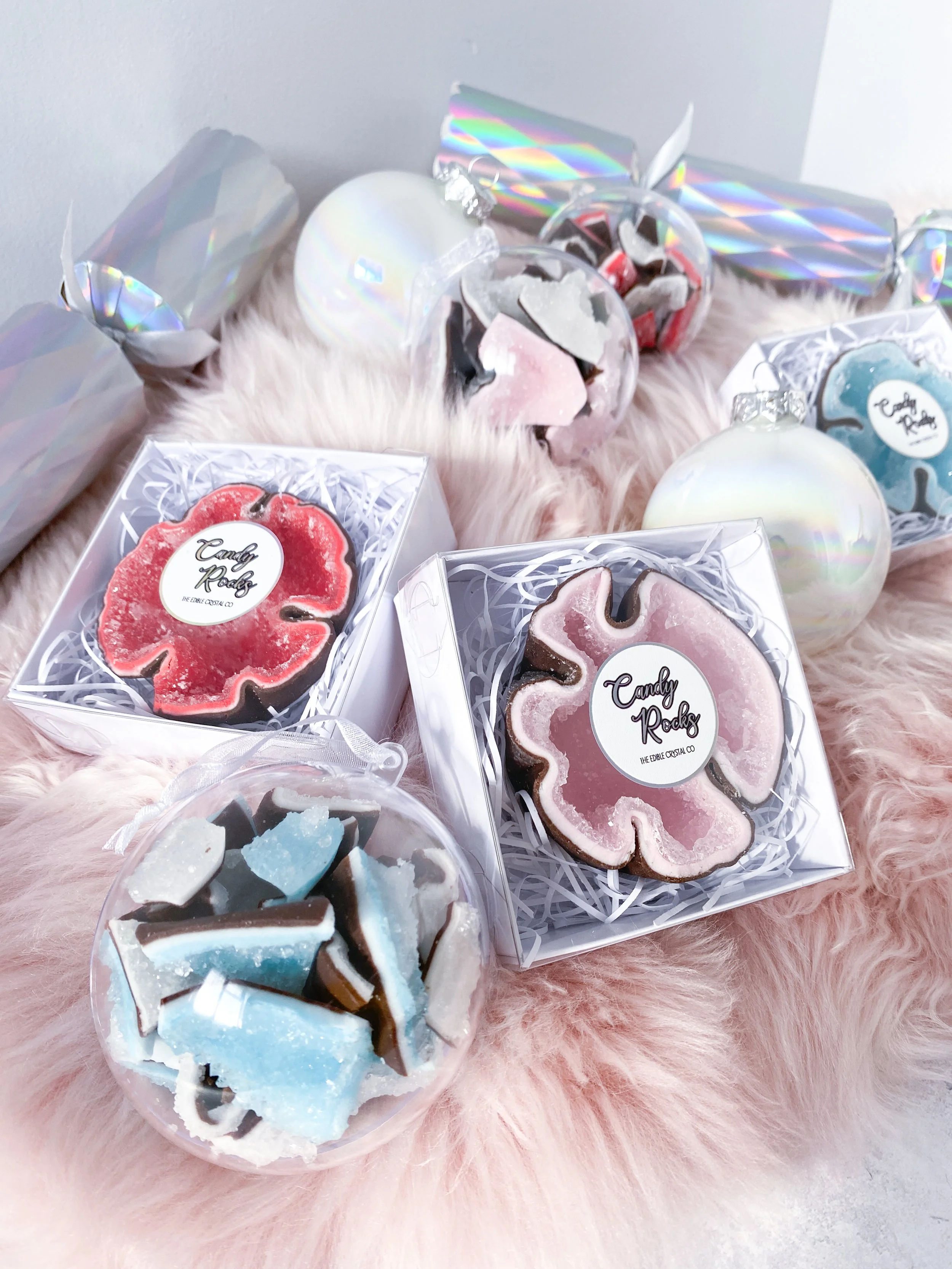 Indulge in the sweet magic of Candy Rocks. Our exquisite and delectable treats are created in house by our small team of sugar artists at our Candy Rocks Bakery based in Surrey. Each crystal-like candy is a masterpiece of flavor and sparkle.